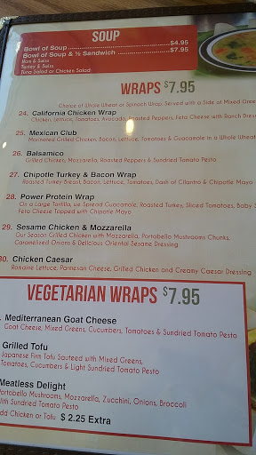 Good breakfast menu with many healthy selections. Warm and courteous staff. The goat cheese tomato and spinach egg wrap was hot and delicious. Great coffee too! Free parking in the back.