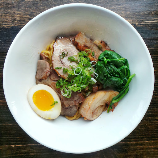The Ramen is incredible. The noodles are perfect, and the soup itself is flavorful and great. The problem however is the service/waiting time. I got here at 7:30 with a party of 2 on a weeknight, and wasnt able to get a seat until 8:00 at a community table. The servers were struggling to keep up, as was the kitchen. I didnt get my Ramen until about 9:00. I cant imagine how this place is on weekends. Its probably a zoo. Location is very small, and loud for that matter. Food is incredible, so if you dont mind the wait then by all means go ahead. I also wasnt a fan of the ambiance. We sat at the "bar" and I felt like a fish in an aquarium. All of the hungry people waiting outside for a table were gawking at my bowl of ramen/pork buns from outside. They could have hung up blinds at the very least. I dont know if I would come back. Maybe for Lunch. However factoring in the time it took to get seated and served I think Id rather go to NYC next time for my ramen fix.