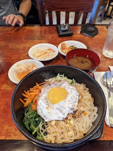 Great place if you want to try authentic Korean food. Owner is very friendly, and will offer you recommendations of you have never tried Korean food. Portions are quite large, freshly prepared while you wait. Accepts cash (of course) and major credit cards. Friendly request I have noticed on the wall- if total is below $20, please pay In cash. No separate parking, but street parking is available - side street 2 hrs - enough to enjoy your meal.