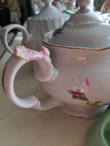 Went for mothers day tea and I dont think they were prepared for it. no plastic cups with straws to give the small kids water. We were a party of 6 and had to wait really long to be served. I thought the selection of teas was limited (no chai tea on the menu?) I did think the place was cute, I did think the staff was nice and friendly as can be. One waitress came outside to help calm my screaming toddler. I wouldnt usually bring my small kids to a place like this but i thought for mothers day they would be prepared. It would have been a nice added touch to give each mom a rose or a small complimentary tea sachet when leaving. Ive been to other places on mothers day where the place was prepared to deal with mothers and small kids with utensils and quicker service as small kids have small windows of patience. Again I am thankful for the staff, im sure a mom with 2 small kids can be an overwhelming customer and i did appreciate that they did what they could.