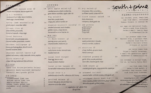 Most amazing food and staff at this restaurant. Decor is amazing; rustic and glam all at the same time. Successful anniversary dinner with my husband. The chef was really nice and came to our table to wish us. We were treated to dessert, which was heavenly. Our server Eddie was awesome and took good care of us. Thank you south+pine for making our night special. Definitely recommended.