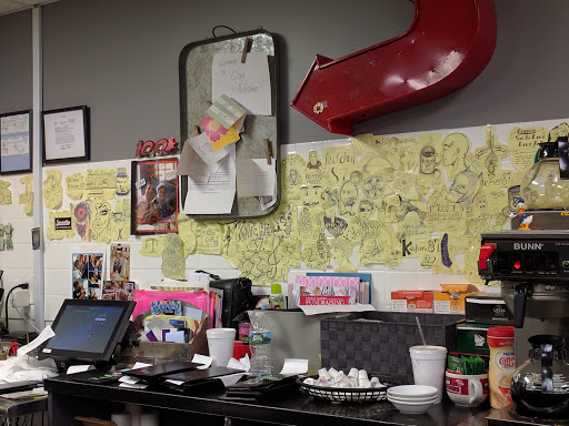 This is my kind of place. Small breakfast & lunch place with some bar seating and great friendly staff. The menu was usual breakfast, sandwiches along with shrimp & grits and sausage & gravy as other items I noticed. The prices were really cheap with a healthy portion for our plates and every other I saw coming out. Even though they were packed the food was out on 10-15 minutes, staff never seemed hurried or cranky and always giving greetings and goodbyes. I grew up in the south but never really like grits until I had them from Silk City in Philly so I tried the shrimp & grits as opposed to omelettes that I ALWAYS get and my lord am I glad I did. It didnt look like too much when presented to me but the bowl was deep and shrimp was cooked and spiced to perfection (which I rarely say with any seafood here, because I am a seafood snob). I usually offer my gf some of what Im having but I was enjoying it so much I honestly forgot and she made sure to joke with me after about it. Behind the bar there were a lot of random drawings on small yellow notepads and each table had said notepad so Im assuming they were all from customers? I am very sad we live 30 minutes from this place and cant be here more often to try more of their menu but I would be happy to take the drive to this area just for this place.