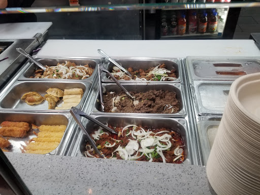 Similar to a what you would find in most burrito places where you pick items as you go down the line, however this location offers items that are less like normal burrito places and more like asian restaurant. The food here is consistently tasty and I highly recommend the sauces as they bring up the food to a whole new level.