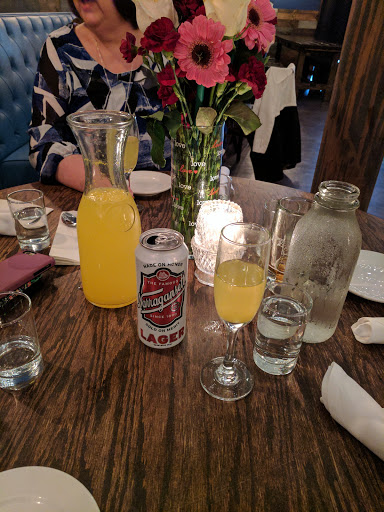 We came here to get a few drinks here on a Sunday during brunch. Probably not the best decision as it was packed! There were 6 of us seated at a community style table with a few other people and needless to say, it wasnt quite comfortable with having to hold winter jackets, purses, etc. The crowd was your late 20s early 30s hip type. The kind of crowd that still rages every Saturday night and needs a little hair of the dog the next day. Weve all been there... There was a DJ playing loud music so it was a little hard to hear each other say "lets go somewhere else. " Since we didnt manage to get drinks, Id try again on a different day of the week for sure.