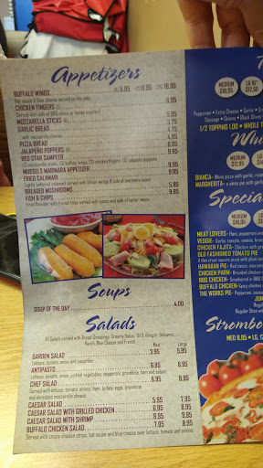 Every time we order from red star its always something price is not consistent and usually expensive flavor of sauce has gone downhill in the last few years today the Cheesesteak Hoagie had absolutely no flavor specifically asked for no oil and vinegar and the role was completely soggy the pizza for my little kids was Burnt and greasy..