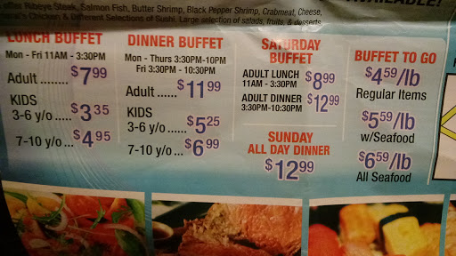 There are three reasons to not eat here: low quality of food, expensive prices, and unsanitary conditions. Low quality food: the food is noticeably made with indifference to taste, more like they thought they could cheaply throw together a few things and hope it would taste appetizing. It doesnt. I recognize that this is a buffet and not a five star restaurant, and I did not come in here expecting that. But even mom and pop pizzerias care about the taste of the pizza and food they are selling. Expensive prices: for one adult to eat, its $12.99 + tax = 13.90. If you want to drink anything other than tap water (lemonade or soda) the total price is $14.68 + tax = 15.71. You might as well run over to the local grocery store and buy a litre of soda for $2.00, since at most you might drink 2 cups of soda (filled with ice) at this buffet. Unsanitary conditions: the bathrooms are always, without fail, sloppy, poorly cleaned (if at all), and gross. I have come here on four separate occasions and I have finally had enough. It has not changed and the owners do not seem to care so long as theyre making money via cutting costs of good quality ingredients and overcharging for lackluster food. Edit: an update. I ate here on Saturday, and the next day my bf and I got sick! Please rethink this place.