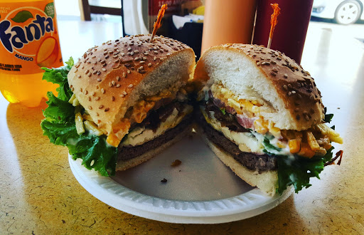 A huge local college kids base that offers unique eats at very affordable prices. Their specialty Hamburger is big, tasty and loaded with goodies like fries, corn and other variety of toppings to choose from. Another great item is their mixed salad topped with large pieces of Tilapia fish at a $7 price that cant be beat. Service is excellent, small eat-in dining room, substantial dessert offerings. Home delivery offered.