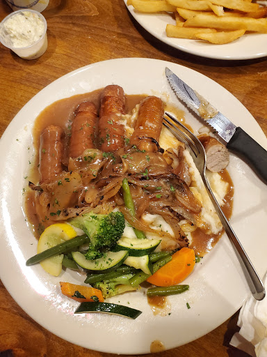 Ive been there 4 times. Once we got there early-ish on a Saturday and and it was about half full. By the time we had drinks in hand and ordered it was full. We were a party of 4. One of our party had the soup. But no soup spoon, so when he finally wandered by we asked for a spoon. When he finally wandered by again we asked for a spoon. We got an excuse and a spoon. When my fish and chips came out they were room temp. And my wifes and friends casserole type pies came out they were room temp on the inside and and a hot crisp crust on top. I complained and they quickly ran out fresh fish and chips. Still not hot from the fryer but edible. That was a 1star visit. The other 3 times we went on Mon or Tues and I had the 12oz steak special ($13.95 with soup or salad) and my companions had burgers or steak also. And the steak is a very good NY strip. Correctly cooked. The burgers were also good. They obviously pre-cook some things and keep them warm. Only get the things that have to be cooked to order. The service ranges from poor to good. The steak is on special Mon and Tues so go then.