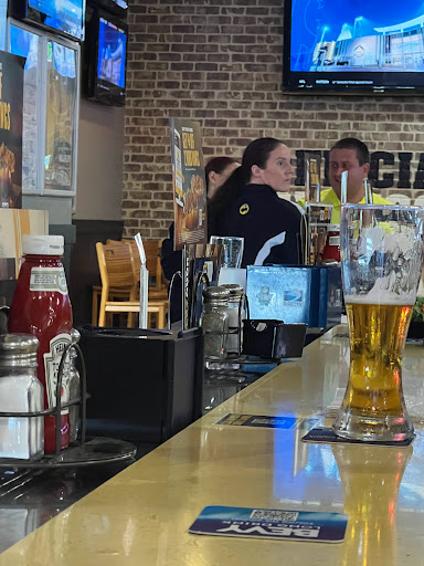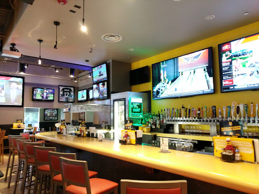 We went here on a dead Monday (post football season) and the service was SLOW! Our waitress was not attentive at all and was preoccupied just shooting the $hit with the rest of the watiers who had no tables and nothing to do. I am not sure why they would have so many waiters on staff as it was beyond dead in there and all of those people just made their own circle of chatter doing absolutely nothing. I watched our waitress stand in this circle talking about nothing and she didnt even bother to come check on us. The food took a long time to come out also, which was odd considering the lack of patrons. Then again, the cooks were probably out there talking as well. The wings are good and the sauce variety is definitely hands down extensive. If you cant find the sauce flavor you want here then it doesnt exist. However, they might as well just sell wings, beer, and cocktails(which could use improvement) as nothing else here was really tasty in my opinion. The burger I ordered was just eh. It was edible and saved me from having to cook that night but I could have made a tastier burger at home. The 1 positive on the staff side is the Manager...or at least I think that is who he was. He was a very energetic gentlemen(I believe he was Spanish) and he came walked about the place with sheer energy and livelihood. Too bad he didnt break up the waiters during the 45min+ pow wow that was going on.He came over and asked how everything was to which we basically shrugged indicating that we werent impressed. He didnt even blink and kept it moving. This obviously means he doesnt listen to the customers.