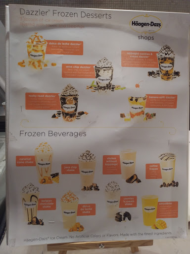 I visited the Haagen Dazs at the Shoppes in North Brunswick. There were a lot of flavors, different types of cones, shakes, smoothies and desserts of all kinds. The staff was friendly, attentive and happy to answer any questions about all the different choices and menu items. And the ice cream? - Awesome! I highly recommend them.