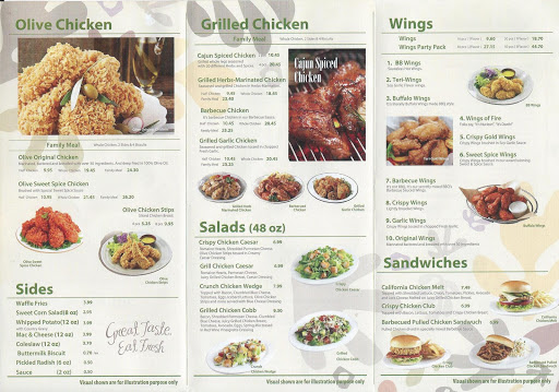 Excellent! Unlike KFC it is COOKED FRESH and does not sit around!! And they marinate, batter, flour coat and use 27 herbs and seasonings and 100% Olive oil so its the healthiest fried chicken. A GREAT CRUNCH and a little sting of cayenne at the end make this a keeper! The biscuits, cole slaw, and mashed potatoes with gravy are darn good too!