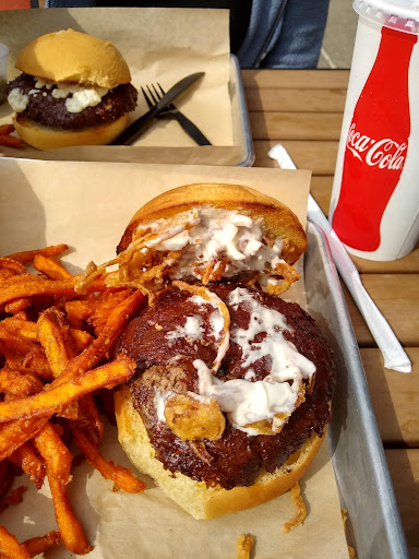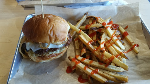 An excellent burger place with great choices for free toppings. They give you so many fries, a lot more than you would expect. You can also order online and pick it up there.