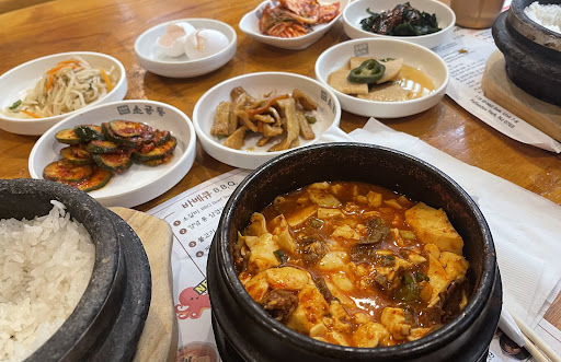 Korean restaurant specializing in Tofu Soup. Not much choice for side dishes, but tofu soup itself is delicious. You can choose the level of spiciness. Each rice comes cooked with its own ceramic bowl.