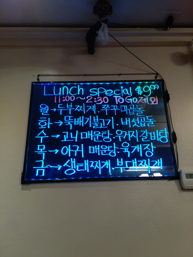 I used to like it. The quality of food and experience used to be good but each time Ive gone, about 6 times, it has consistently gotten worse. This time we brought some family and were embarrassed. The waitress sat us down served us waters and after about 5 minutes of getting comfortable, she came and asked us to move to another table which was exactly the same size. She then sat another family in our seats. That is unheard of! After ordering, they brought all of our food out at once so the soups we ordered, the free kimchee, side orders, and the BBQ were all at the table at once. The food was lacking in quality and they reduced the portions. They used to bring out complimentary fried fish but they told me it wasnt available. They brought out 1 bowl of egg for 4 people which I have always gotten 1 for 2 people. Part of the fun is having the BBQ at the table, if you have been there you know what I mean. The waitress tried to convince us to let them cook it in the back kitchen because she didnt want to cook it for us. We spent $135 on 4 soups and 2 BBQs. The BBQs were much smaller portion than usual and could have served one person. After cooking the first small portion of meat, I asked her if she could hold off on cooking the second one until we ate a little more of the soup. When she came back she got impatient and told me they wanted to take the charcoal to another table. The waitress kept cutting in front of me as I was eating and leaned across my dish, putting her shoulder in front of my face for minutes at a time as she grilled the meat and remove items from the table. We were rushed as the waitress kept taking food from us before we finished. The lady took our lettuce from our table as we were still eating, added some more on top, and then served it to another table. After the horrible experience I gave her a small tip. When she saw the amount she confronted me and made a scene. I explained that I have been there before and this was the worst experience Ive had. I told her she rushed us and the food wasnt as much or as good. She began raising her voice telling me she gave us excellent service. I got very angry and told her she didnt even deserve a tip! I will not be going back again.