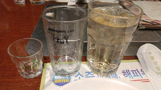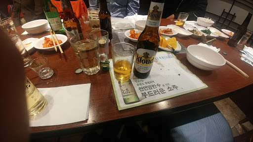 If youre like me, you are currently reading the reviews to see if this establishment serves alcoholic beverages. I am here to tell you, YES THEY SERVE ALCOHOL. They have BEER, SAKE (hot and cold), and of course our favorite, SOJU. Service was good, the meal was good as well. But lets face it, it was midnight, after a fun night in New York, I just wanted to sit down, eat Korean and drink some damn Soju! This restaurant easily satisfied those wants.