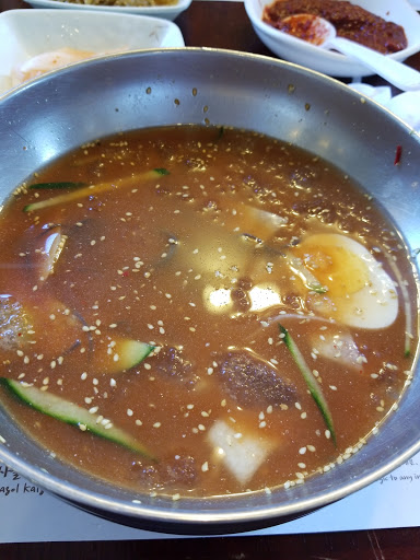 Famous for their noodles, but do have number of other Korea foods. The broth their serve in a cup is delicious.