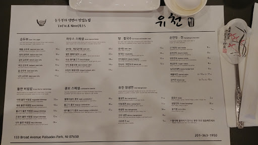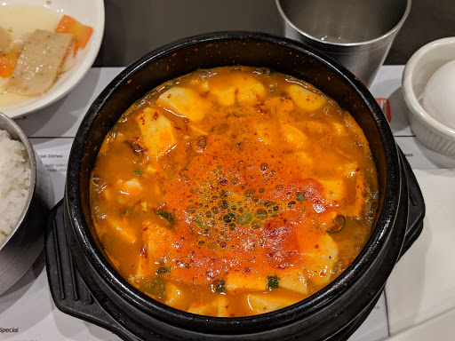 Edit 3 months later: I am here 3 months later for dinner and love this place even more! I got a chance to try other restaurants in the area and the soup in this place has more natural flavor. It is not loaded with garlic to give flavor like other restaurants. Also the bathroom is spacious with a modern vanity and a station with mouthwash, tooth pick and cups to freshen up at your own privacy. So thoughtful! Now my favorite Korean restaurant in NJ! Our lunch for 2 was so affordable. $14 for a lunch combo of hot plate bibimbap and silky seafood tofu pot! It came with small dishes as usual but this place also gives you 2 bottle of Poland Spring water, big soup bottle warmer with 2 metal cups to drink your soup, and 2 salads! Such a great price. Service was good and quick. Flavor was delicious!! You MUST give it a TRY!