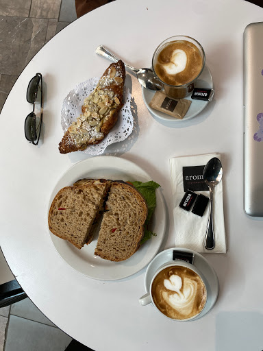 Nice almond chocolate croissant with cappuccino. Its nice area to relax after shopping.