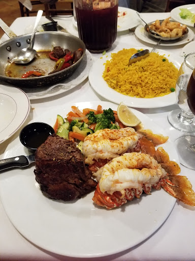 So first before getting started Id like to address the three negative reviews. One of them is poorly reviewing the restaurant because they mistakenly thought it was Mexican food. Thats just completely irrelevant. The other two reviews are about the service. I have been to this place many a time and will easily tell you avoid the female waitresses at all costs. Im not sure why but they just are not as good as the men. We know on a first name basis because they are cheerful and excellent. I cannot say the same thing about the ladies sadly. Now for the food. The food at this place is awesome. I think there are a few dud dishes like the surf and turf and I personally didnt care for the Chilean Seabass a la Chef. However the lobster is perfectly cooked, the seafood in green sauce is a staple at our table, although Im not a filet eater Ive had may people at my table love it, and the Fred Flintstone size ribeye Ive had and its excellent. The lamb chops are great. Although its good Id avoid the churrasco steak as its very rich. However I would warm folks that some of the portions are just so big they are worth the extra $6 to share the plate. We dont have too much experience with the desserts (no space after the mains) but the flan is good and the rice pudding from what we hear is to die for when its freshly made. Also this is a place for garlic lovers. If youre not, let them know before hand otherwise youll be wildly disappointed. Also you dont need a starter unless youre sharing with a large table of folks. The mains are just too big. Is this place cheap? No. However is it a good value? Resoundingly yes. You get your moneys worth.