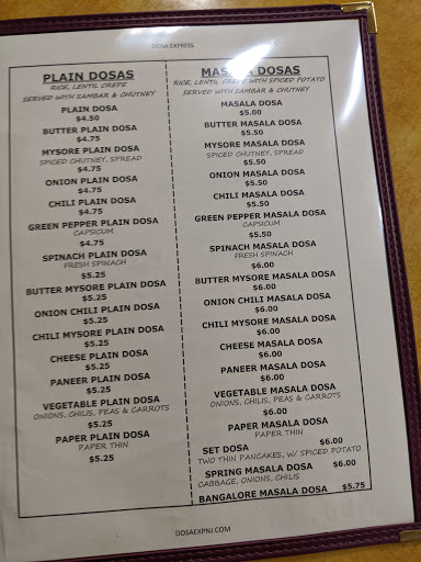 The dosa here is amaze balls!!!!!!!! I cannot get enough of the mouth water idli wada combo!!! The hostess always treats us tenderly and pampers us to our fullest needs!!!! She even accommodates nut allergies and special request!!!!! I cannot get enough of this place and amazing service!!!! It feels like Im in India every time I step foot into DOSA EXPRESS