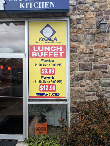 Vennela is a great place to eat South Indian food that reminds you of home and India. The food is so amazing and matches your spice levels as well. The setting is calming and there is always some nice music playing. The service is fantastic. The lunch buffet has a large variety and so many sweets and curries to choose from. Dinner is also awesome and also has a large and tasty variety. Definitely one of my favorite Indian restaurants to eat at!