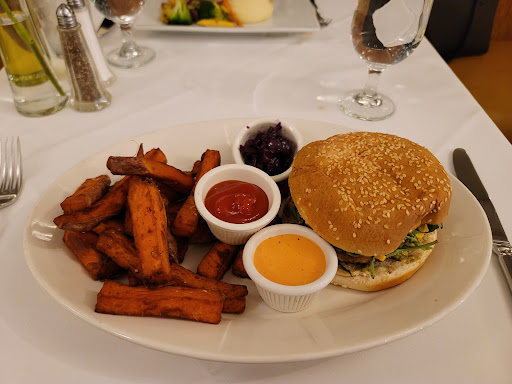 The food is tasty. Service has its good days and bad days. Staff is willing to do whatever to accommodate customers request. Bar is "cozy." Excellent for parties! Two large rooms upstairs for parties. Comfortable patio seating available throughout the summer. Usually not crowded, but holidays make the dining room unbearably cramped. Certainly not a five star contender, but provides a decent fine dining experience.