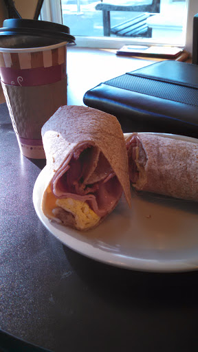 Stopped here to warm up while it was snowing outside. We ate a bowl of sweet corn chowder and a croissant and had a chai latte to drink. The soup was hot, delicious, perfect comfort food on a chilly day. The chai latte was very delicious too, but I was annoyed when they charged me a whole dollar more for soy milk. Great place, a little over priced.