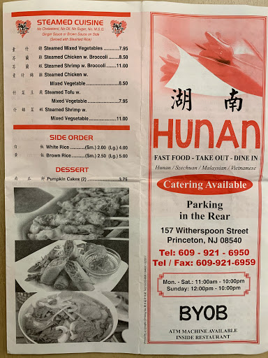 Of all the Chinese food restaurants in Princeton, Hunan has the best tasting food, the lowest prices, and the most friendly staff. Youre crazy to go anywhere else. Well worth the walk from Nassau.