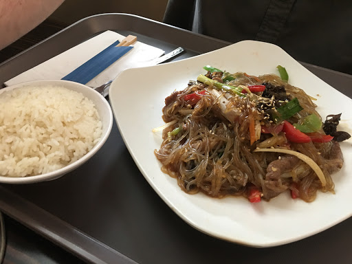 Amazing, modern little pan-Asian joint with authentic and delicious food. Fast service, even with the busy lunch rush. Free water and hot tea. A little more expensive then typical lunch joints at $12-17 depending on what you choose, but the taste more than makes up for it. Their menu covers most Asian cuisine, but they seem to do all well, especially Korean: My colleague had the Spicy Asian Noodle Cioppino - tons of seafood and noodles and a red flavorful broth. I selected the Bibimbap in a hot stone bowl - a little more in price than the cold version, but being hot made all the difference. Tons of veggies, a fried egg, flavorful meat, and spicy red sauce (on the side - put tons on!) Do yourself a favor and go to this train-station-hugging, out-of-the-way gem.