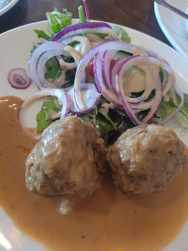 Bland (breakfast) food, arrived almost cold; sparse servings; Berries were not "fresh" per menu (was a canned compote?) Service was slow and inattentive Great decor and atmosphere Wish it was more edible
