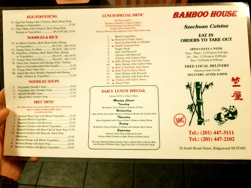 In my opinion The Bamboo House is the best Chinese food take out/sit down place hands done in Northern NJ. We met Sherry years ago and at that time made it our place of choice, they are very attentive, friendly. My daughters love going there and claim to have created their own dish, all white meat battered chicken breast with sliced mango. Sherry’s Moms dumplings are the best, the quality, freshness evident in all their offerings. We highly recommend it to all our friends, try it and youll become family.