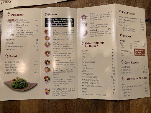 Family friendly family run restaurant for your urgent ramen fix. Not the best (broth is not dense) though but with the ingredients and the price youll be satisfied. You can order chicken, beef, pork ramen with chicken and pork broth options. I tried beef in chicken broth. The spice you need are on the tables.