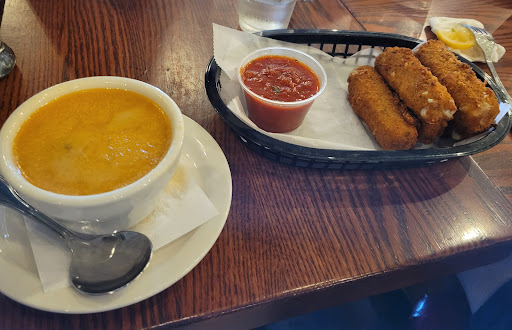 We came here last-second while in vacation, and it was quite enjoyable. It was a Sunday, and I got the all-you-can-eat wing special. They were small-ish, but extremely tasty. I am from Buffalo, and normally outside of Buffalo/Rochester, you dont get the same smoky-peppery taste in the wing skin. They had that here. Very good. Girlfriend loves French onion soup, and here it is "prime rib French onion," which I guess means they add steak juices to the soup. She said it was great. Take the review for what it is - we didnt sample a variety of menu items, and weve been just once. But, the waiter was super-attentive and the atmosphere was loud enough that our baby didnt bother other people, but not so loud to be overbearing.