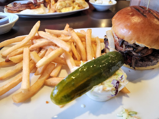 Has good food, but the 1/2 of the wait staff should much to be desired. Went in for breakfest and was seated. This old waitress came up to us and not even with a hello or anything else, her first words were exact as this "How long are you going to take - I only have 4 tables and need to make money". The odasity of this person to say something to a customer is appauling. When we went to complain about this to management, they did nothing about it. It turns out the owners allow this to happen, allow their own staff to say this to customers and they get away with it. Others include a very low class customers that go there, they call them burnouts, another review a customer was charged approximately $400 for a $35 bill and when he called, manangement said go call the president of the United States to go get your probelm resolved. This place is a complete joke. We stopped going here immediately because they dont care about their customers.