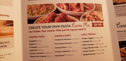 Reliable chain Italian restaurant. They offer online reservations (save your space on the wait list), which is great on busy nights and weekends. They offer delicious low calorie fare - the rosemary chicken is full of flavor but light on calories. Not the most authentic Italian, but you know what to expect.