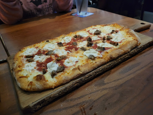 nice ambiance but needs to get its act together.Food was mediocre.The pizza in red bank is far superior.The staff needs training.Waitress was missing for much of meal in terms of refills,drink orders,etc.When we were done she disappeared for at least 10 minutes or more so we were staring at empty dirty plates and waiting far too long just to pay our check.