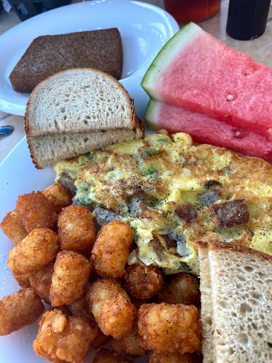 Worst restaurant Ive ever been to. Ive never seen so many spelling errors on a menu before. The water tasted like straight garbage; they didnt even melt the chocolate chips into the pancakes; and my omelette was so watery. Never go here. Waste of money. Waitress was kinda bad though.