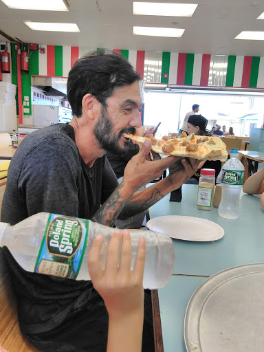 Great place for a Jersey slice of pizza. Slices are huge! Fast service and has tables inside if you want to eat in. The Italian sausage with peppers and onions is also good.