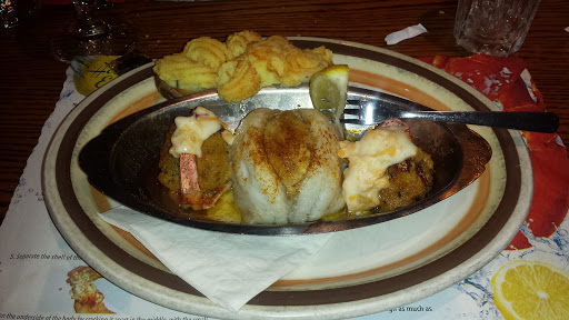 Well myself, my wife and my 5 yr old son and 2 yr old daughter went there for supper and ate for $90 after the $5 tip. I about crap. I ordered the fried seafood combination dinner, my salad was room temp, my baked potato was dry, and for $25 it was NOT worth it. My wife ordered the filet mignon and it was about the size of a baseball. She had a rotten cherry tomato in her salad, and a rotten baked potato that she sent back. The ice tea was watery, my kids spit the shrimp and fish basket that was $13. OVER RATED!!! OVER PRICED!!! It was hot in there also and humid. Im just sick over spending $90. I could of bought a full tank of gas with some change for that, lol.