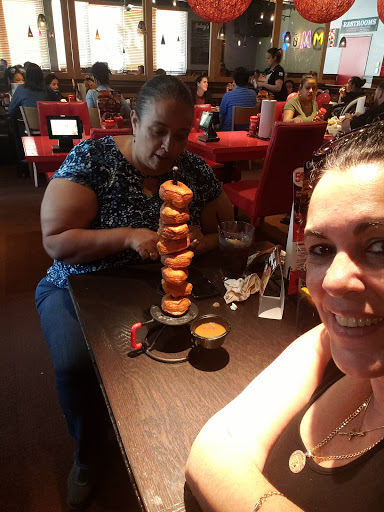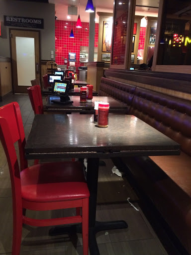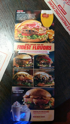 Took our orders food came back 45 min cold! Waitress never comes have to go into kitchen to ask for help. Bathroom filthy hand dryer broken no paper towels 1 roll toilet paper for all the stalls. Desert was ice solid frozen cheesecake with all the table full of dirty dishes. Told blonde manager gave dirty look and walked away. For a one hundred dollar meal with my family it was mission impossible. Dont go here its a nightmare. Oh and themac and cheese burger had 6 noodles on it Ugh!!!!