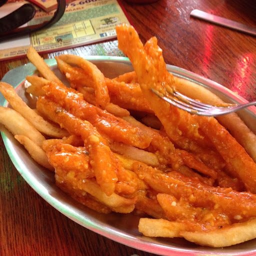 The food here is fantastic! My boyfriend brought me here for the first time a week ago raving about the Buffalo Chicken Cheesesteak. I was a skeptic, figuring his opinion was bias on account that his family has been bringing him here since he was a child. They blew my mind! Id highly recommend the cheesesteak mentioned above, Garlic Parmesan Fries, Homemade Chili, and Buffalo Wings. I plan on making this a weekly stop