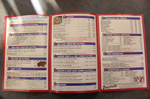 Small BBQ place in a strip center mainly used for take out. The menu was huge between BBQ, burgers/wraps, soup with quite a few sides. Our BBQ platters of ribs and chicken came with two sides for a pretty cheap price of $12 and $13 each. The sweet sauce was pretty good but it smothered the chicken and ribs (not my preference) and the meats themselves were quite good. This is one of the very few places Ive found in Jersey/Philly that actually had dirty rice and it was easily my favorite food item today. The Collard greens were ok but needed some seasoning besides the salt and pepper given to us. The sweet tea was on point. The young lady that took and orders was nice and it took maybe 20 minutes to get the food but they were pretty busy with the take out orders being placed. The inside had a few tables and a very loud TV so just plan on a take out order being the best bet. The three stars were mainly for the atmosphere, smothered BBQ and unseasoned collard greens. We will be back when we are in the area but its not something we will go out of our way to visit.