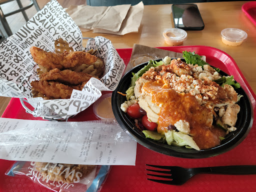 Nice fast food joint. Clean, modern looking place. Soda machines spit out pellet ice instead of chipped which you just gotta appreciate. I got the Buffalo Bleu sandwich, was pretty good. Next time Ill go with something else because the breading gets soggy from being drenched in sauce.