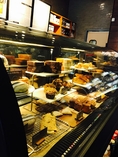 Good coffee and small foods for an acceptable, not great, price. Seating is smaller than most Starbucks, but can still accommodate an acceptable number of people. Bathroom is very far in the back.