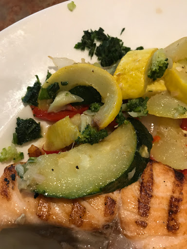 Started off with fried mozzarella. It was A1. My son had soup as did I. Vegetable soup was good. Hearty fresh vegetables. Had Three lobster entree. Delicious. My son had the BBQ Faroe Salmon. He loved it. Service was great. Samantha was friendly and professional. Highly recommend. I have been there several times. Will repeat.