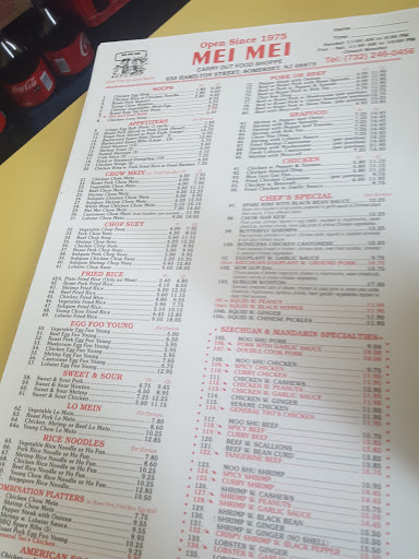 This is the picture-perfect definition of a hole-in-the-wall restaurant. The neighborhood is run-down and the restaurant is in a strip-mall that looks like its on its last legs. And the restaurant has no ambiance whatsoever. But dont be deterred. The food is always fresh and well-prepared. Portions are huge (sometimes too big... you cant just get a small bowl of soup for example) but the prices are reasonable. I always enjoy the hot-n-sour soup, chicken w/ rice noodles and the garlic shrimp. I lived in Somerset, NJ for 8 years and ate here several times a week. Now that Im in VA I stop at Mei Mei whenever I am driving through NJ... and they remember me and greet me warmly. Love me some Mei Mei food!!!
