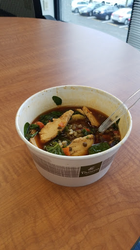 Good as Paneras go. Its important to know that this is a "to go" store, designed around delivery and self pick-up. There are seats and tables in the building, but only about 4-5 tables and a bench that seats another 4-5 people. Not your regular sit-down restaurant.