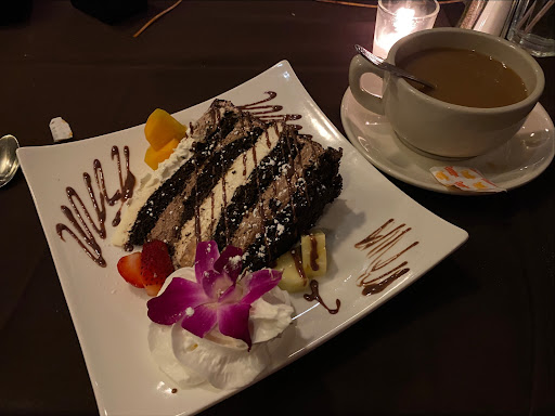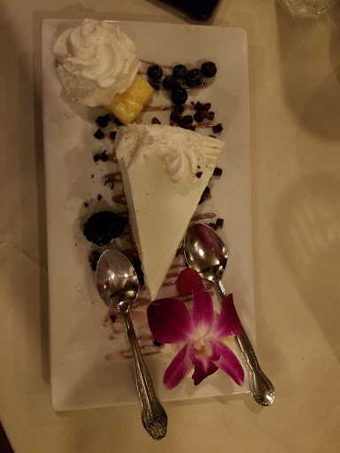 Prices are way out of line with the food. Entrees are large, but a couple people in our party felt it was salty. The jumbo shrimp in my dish were extremely tough to chew or even cut. The desserts sounded good, but we decided not to try them at $9 each.