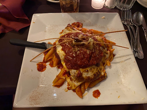 The waiter was friendly, and the ambience was warm. The food portions are comically large, and includes garlic bread and salad. I dont understand the hate this place receives about their food. I thought it was pretty tasty, but maybe I dont have as much of a refined palate.