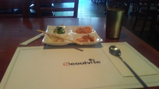 I love Korean culture and my girlfriend is Korean. So we were disappointed with the food, both quality and portion size. I got their Korean seafood pancake which was a somewhat decent size, but it was mostly batter, about 80%. 10% greens and a few cup o noodle ramen soup sized shrimp, no bigger than my pinky nail. Hardly any seafood in it. Bahnchan (side dishes) was hardly a portion of what bahnchan should be and they only allow 1 refill. That is NOT Korean hospitality. It was disgraceful and shameful. My girlfriemds Kimchee jiggae was 2-3 days old and small in portion compared to other traditional Korean restaurants in the tristate area. My girlfriend says this was not traditional korean food and that it was a disgrace. We will never come here again. Not hospitable, very stingy. Was empty on a friday night dinner service, that should say something.